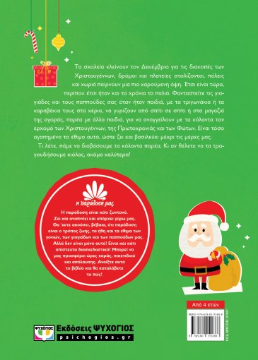 Η παράδοση είναι κάτι ζωντανό. Ζει και αναπνέει και υπάρχει γύρω μας. Θα ’χετε ακούσει, βέβαια, ότι παράδοση είναι ο τρόπος ζωής, τα ήθη και τα έθιμα των γονιών, των γιαγιάδων και των παππούδων μας. Αλλά δεν είναι μόνο αυτό! Είναι και κάτι απίστευτα διασκεδαστικό! Μπορεί να μας προσφέρει ώρες χαράς, παιχνιδιού και απόλαυσης. Ανοίξτε αυτό το βιβλίο και θα καταλάβετε!