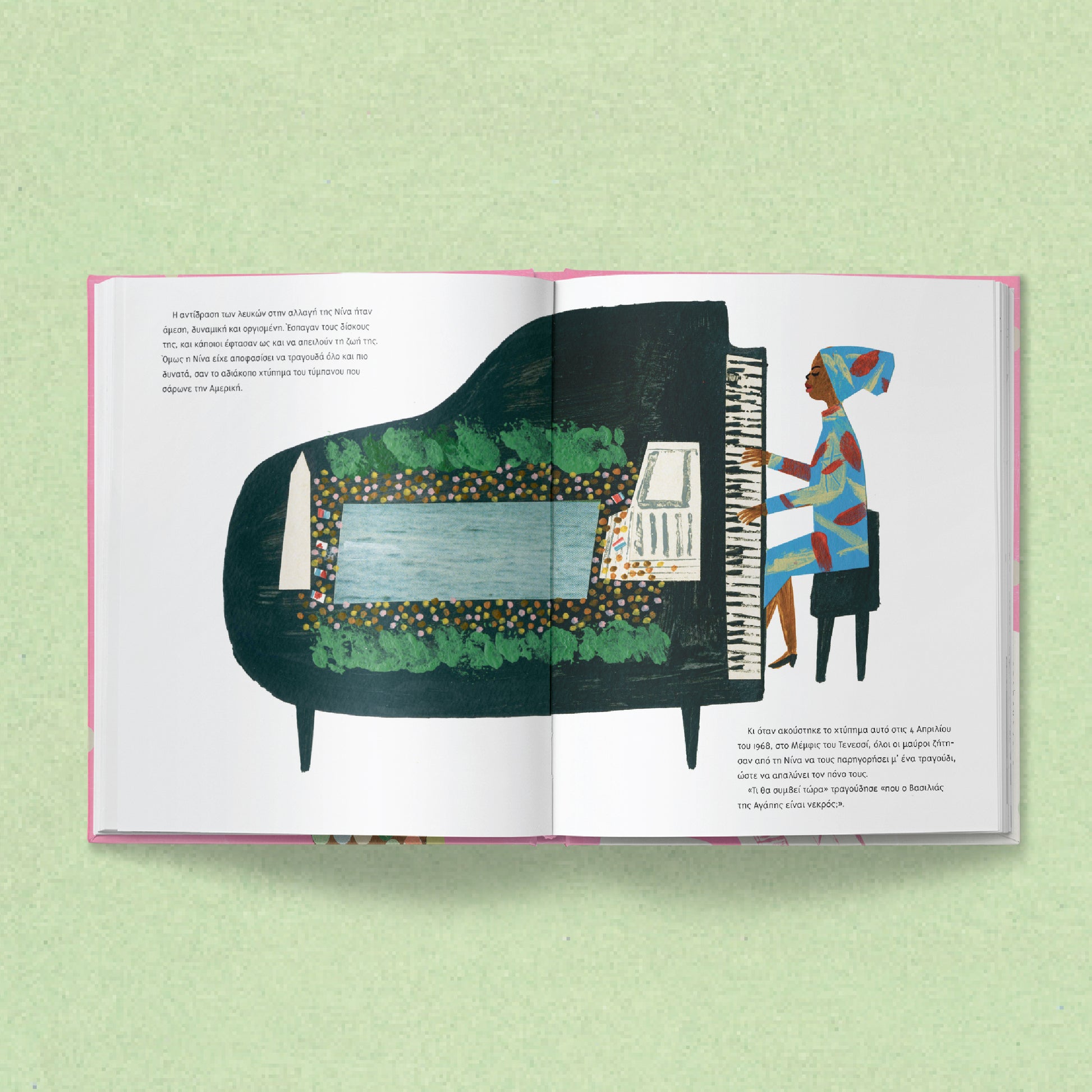 Η όμορφη λυρική αφήγηση της πρωτοεμφανιζόμενης Τρέισι Ν. Τοντ, που τη ζωντανεύουν τα καθηλωτικά χρώματα του πολυβραβευμένου Κρίστιαν Ρόμπινσον, είναι η εμπνευσμένη και μοναδική ιστορία της μικρής Γιουνίς, που, όταν μεγάλωσε έγινε η διάσημη μουσικός Νίνα Σιμόν. Αναδεικνύει την τολμηρή, προκλητική και πολύ σημαντική κληρονομιά της που παραμένει ζωντανή ως τις μέρες μας, θυμίζοντάς μας πως χρειάζεται να είμαστε πάντοτε έτοιμοι για δράση και γεμάτοι ελπίδα!
